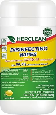 Herclean Wipes, Cleaning Wipes, Household Cleaning Wipes - Office Supplies, School Supplies, Travel Essentials, Home Essentials 85pcsCanister12 PER CASE